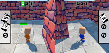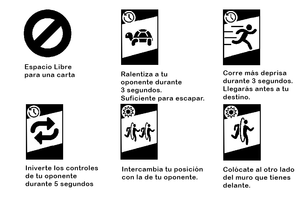 Cada jugador cuenta con un mazo de hasta 3 cartas, y comienzan la partida con una carta en su mazo. Tomando cajas sorpresa que encontrará por el terreno de juego podrá adquirir nuevas cartas con las que sacar ventaja a su oponente.